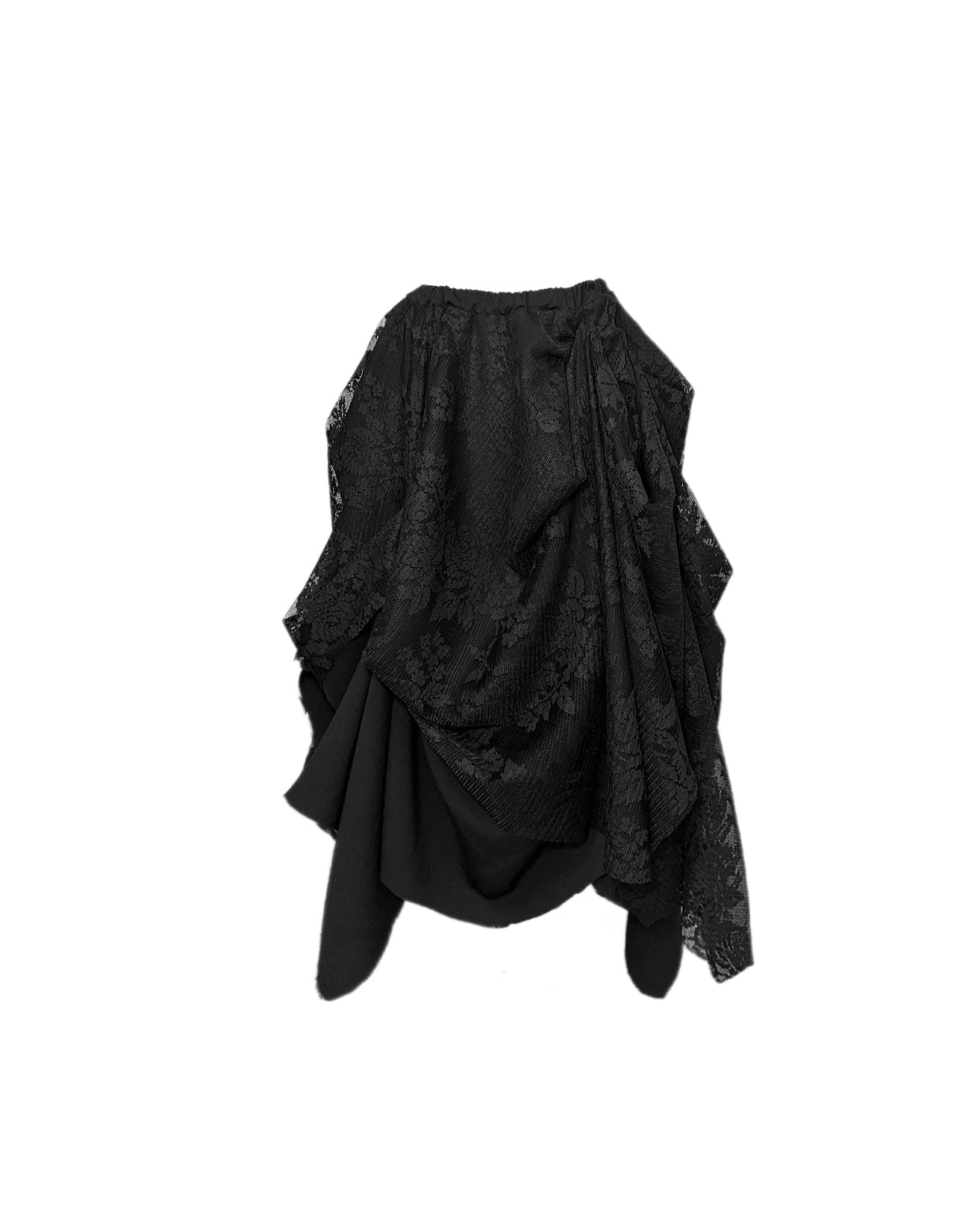 The LAYERED RAW HEM LACE SKIRT features a floral lace pattern in its design. Made from lightweight lace and powder touch crepe, it enables easy-movement whilst remaining beautiful. The hems are left raw as a part of the collection.