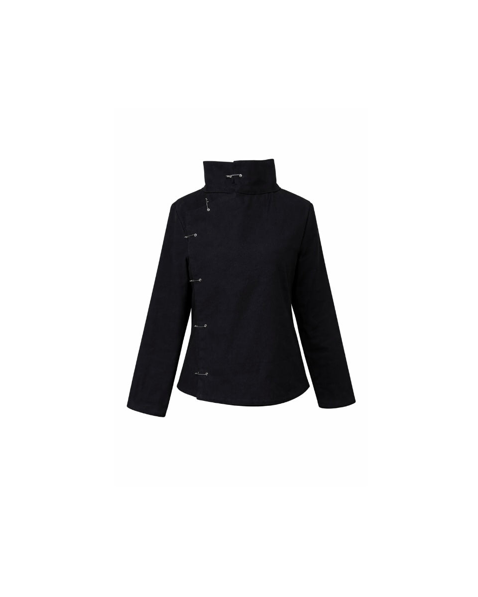 Constructed from Cotton Drill material, the SENTINEL LAYER offers a controlled silhouette with a softened wearability, blurring the lines between top and jacket. Featuring a safety pin closure to bring contrasting detail to the garment.